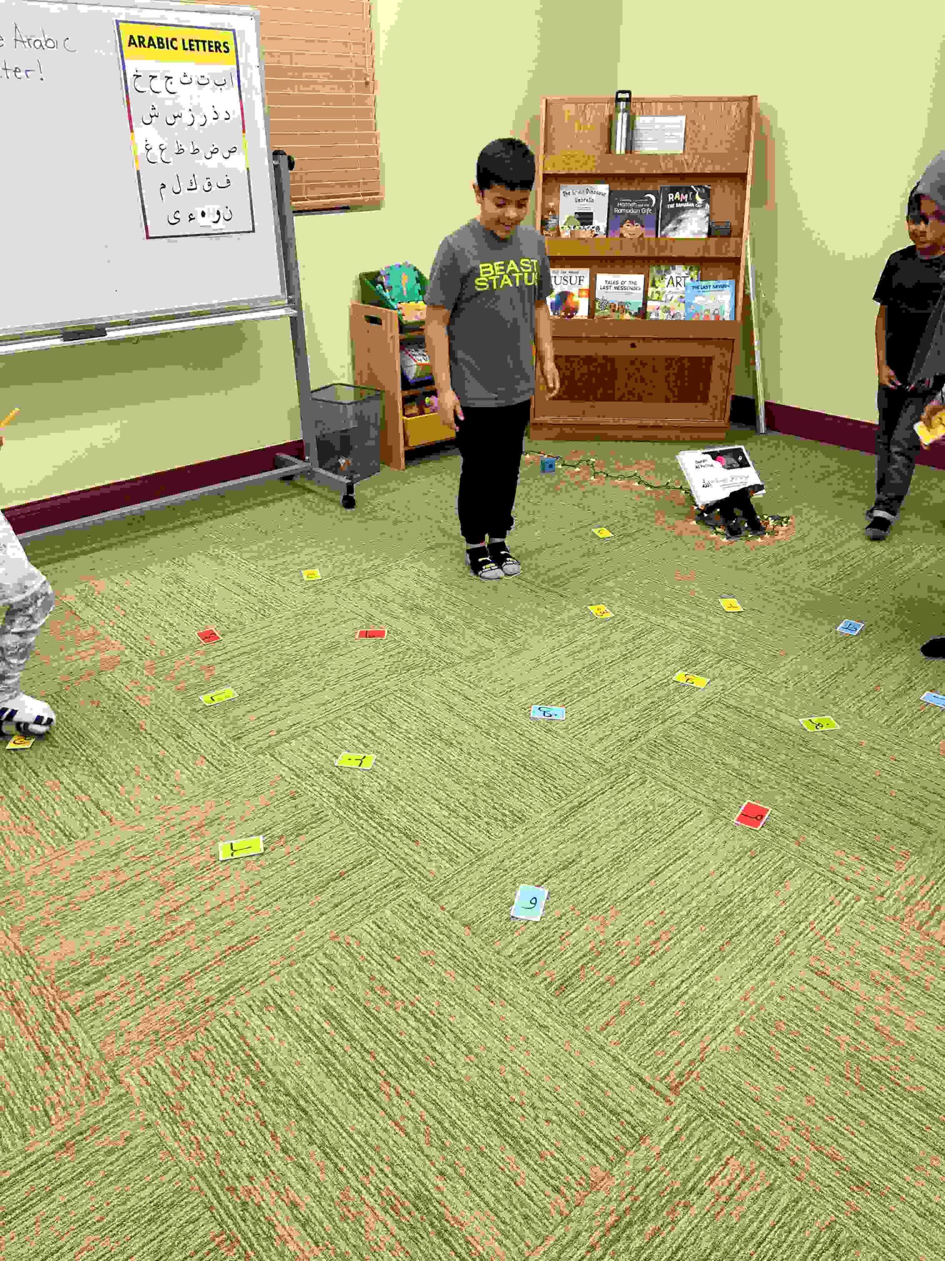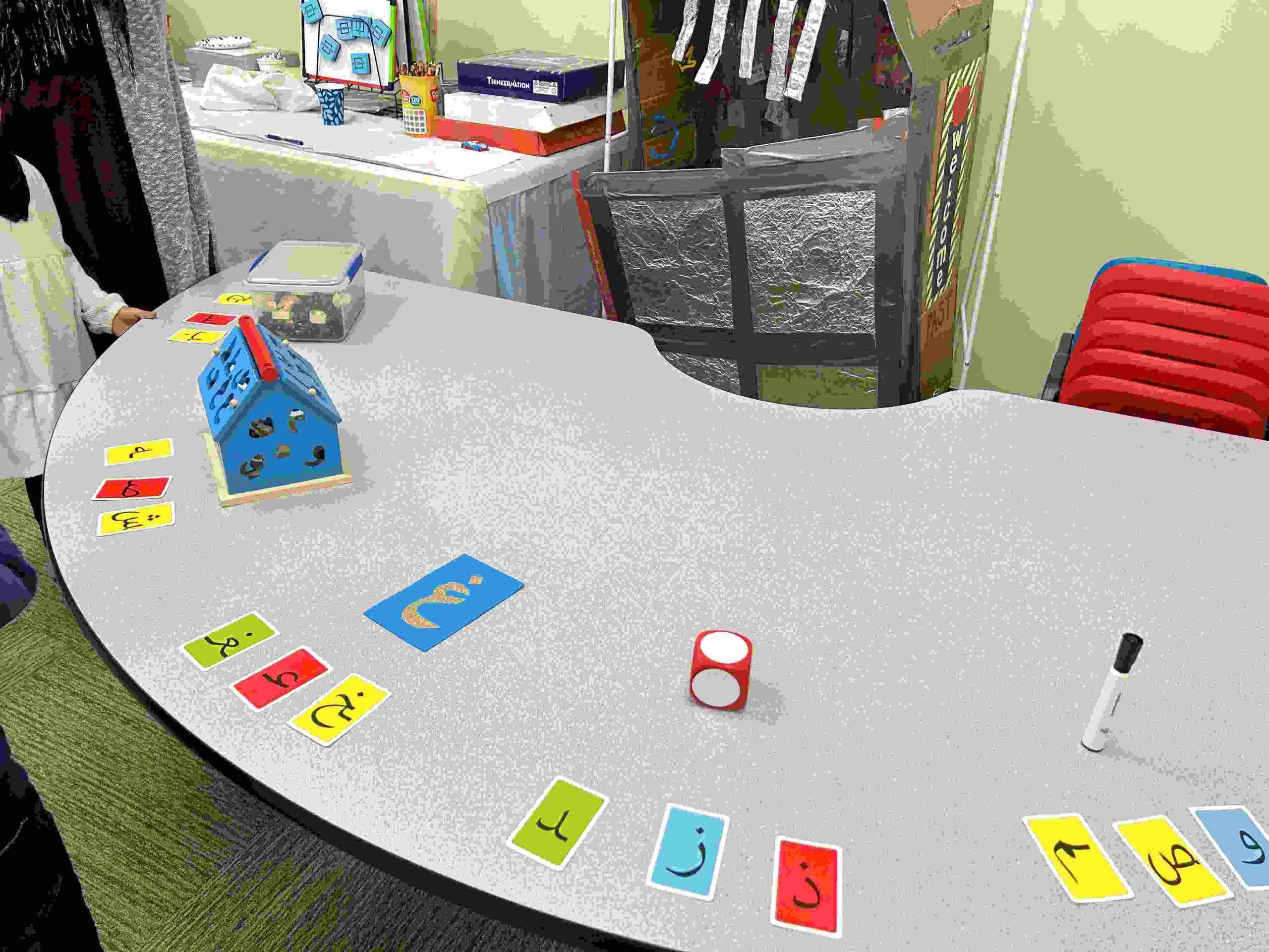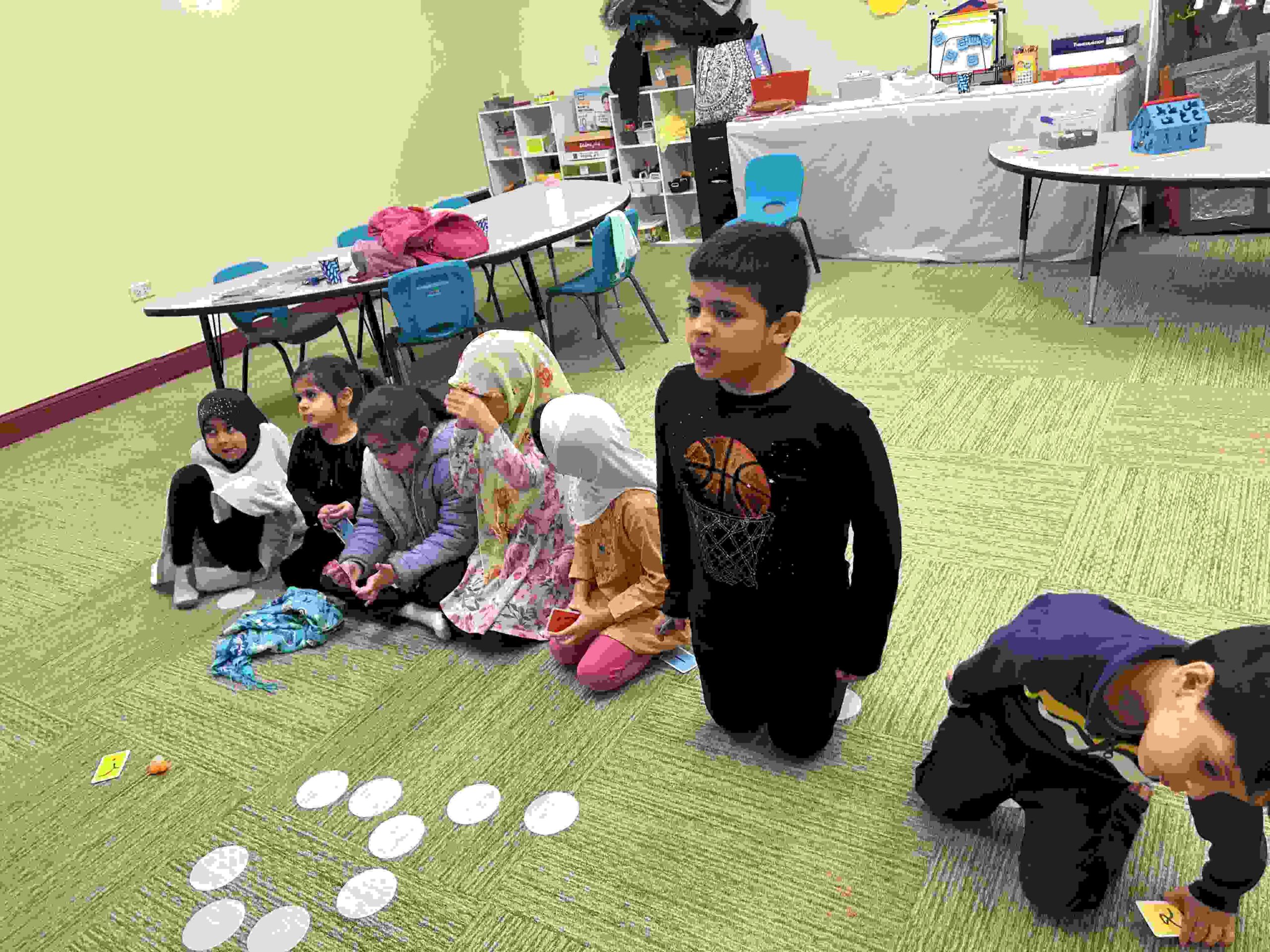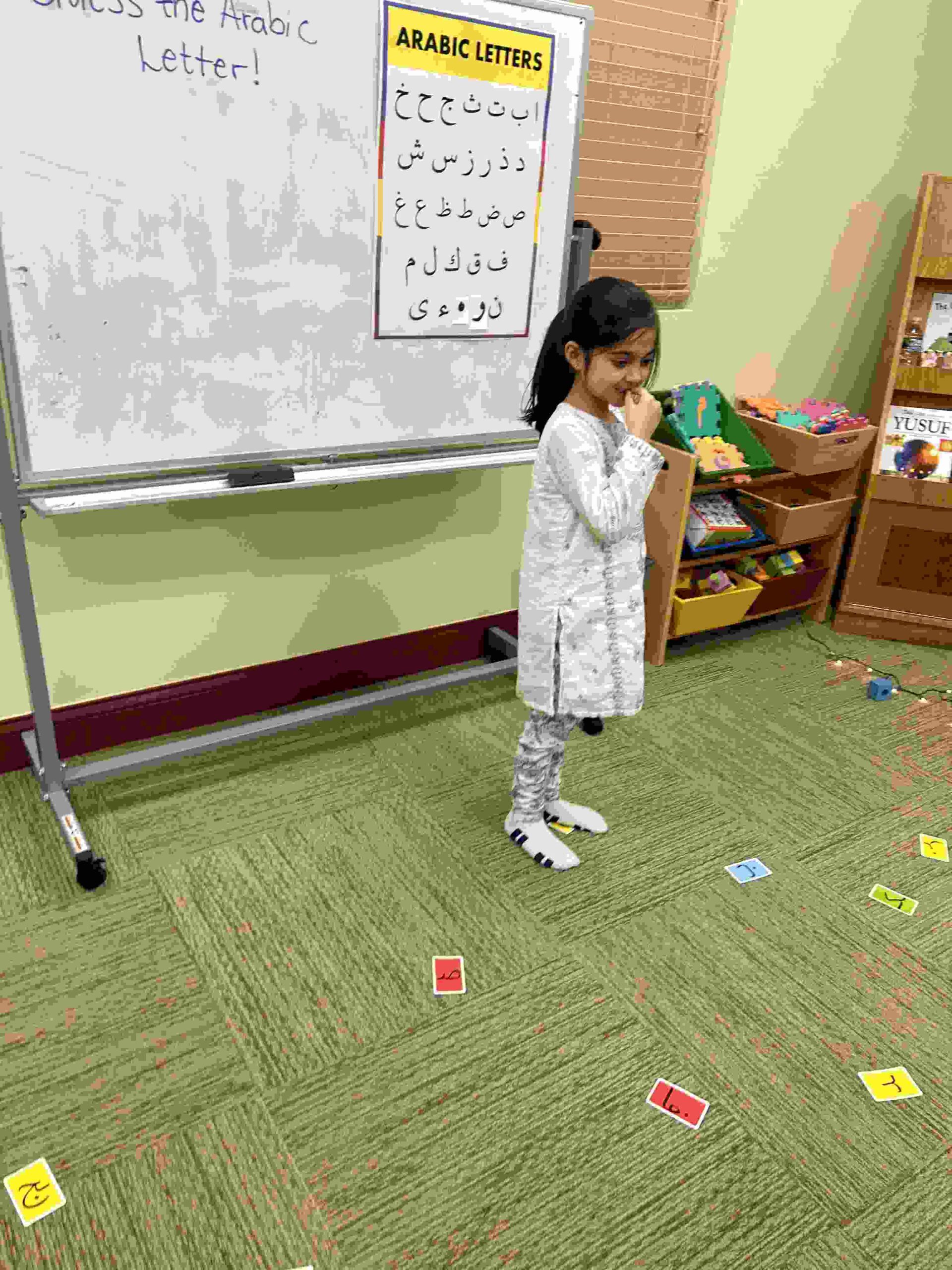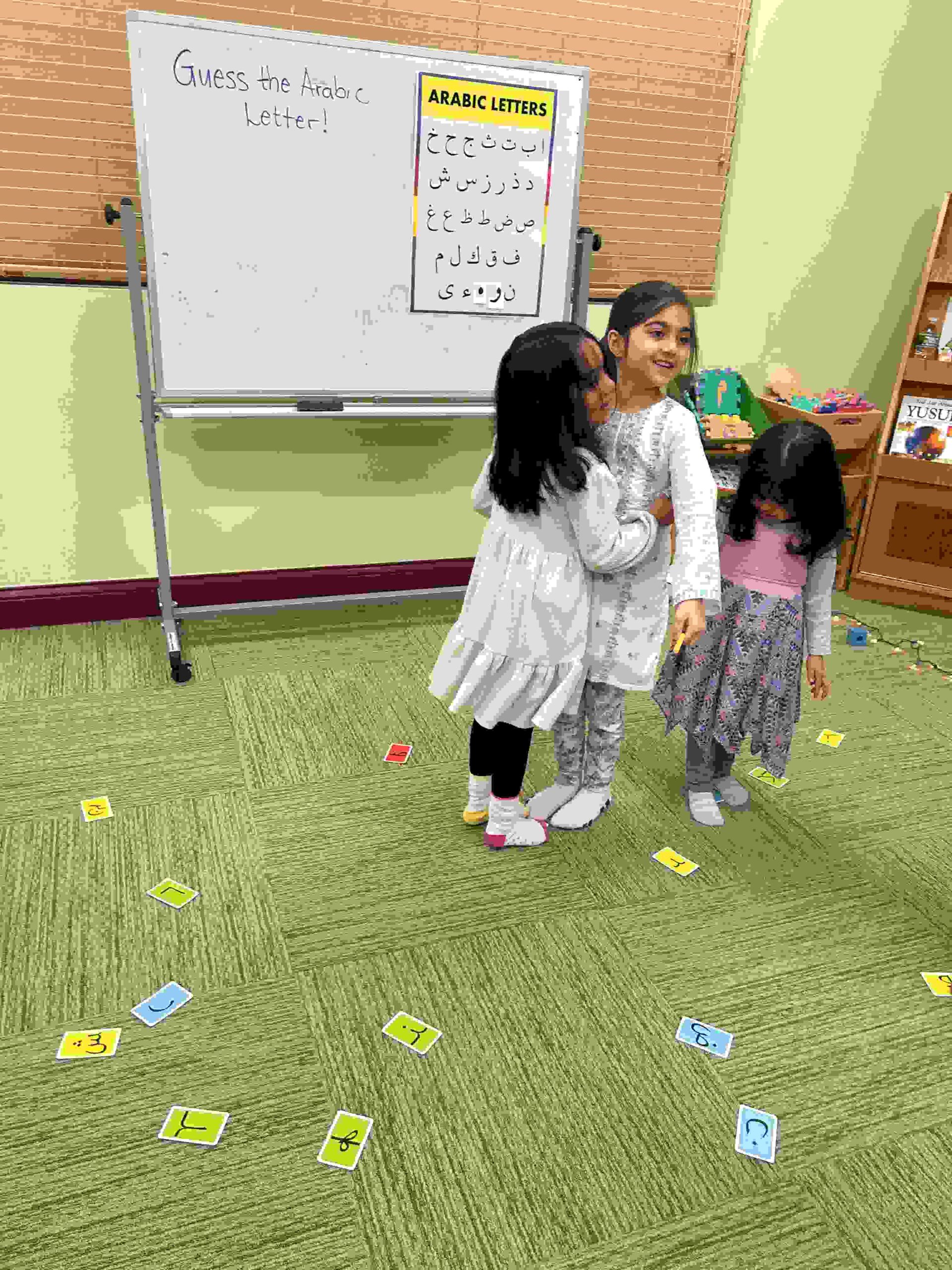 HAMZA: Kids were introduced to Hamza with a short poem and story to demonstrate how it’s a special letter that doesn’t change its shape but can be found on its own or sitting on top of or below other letters.