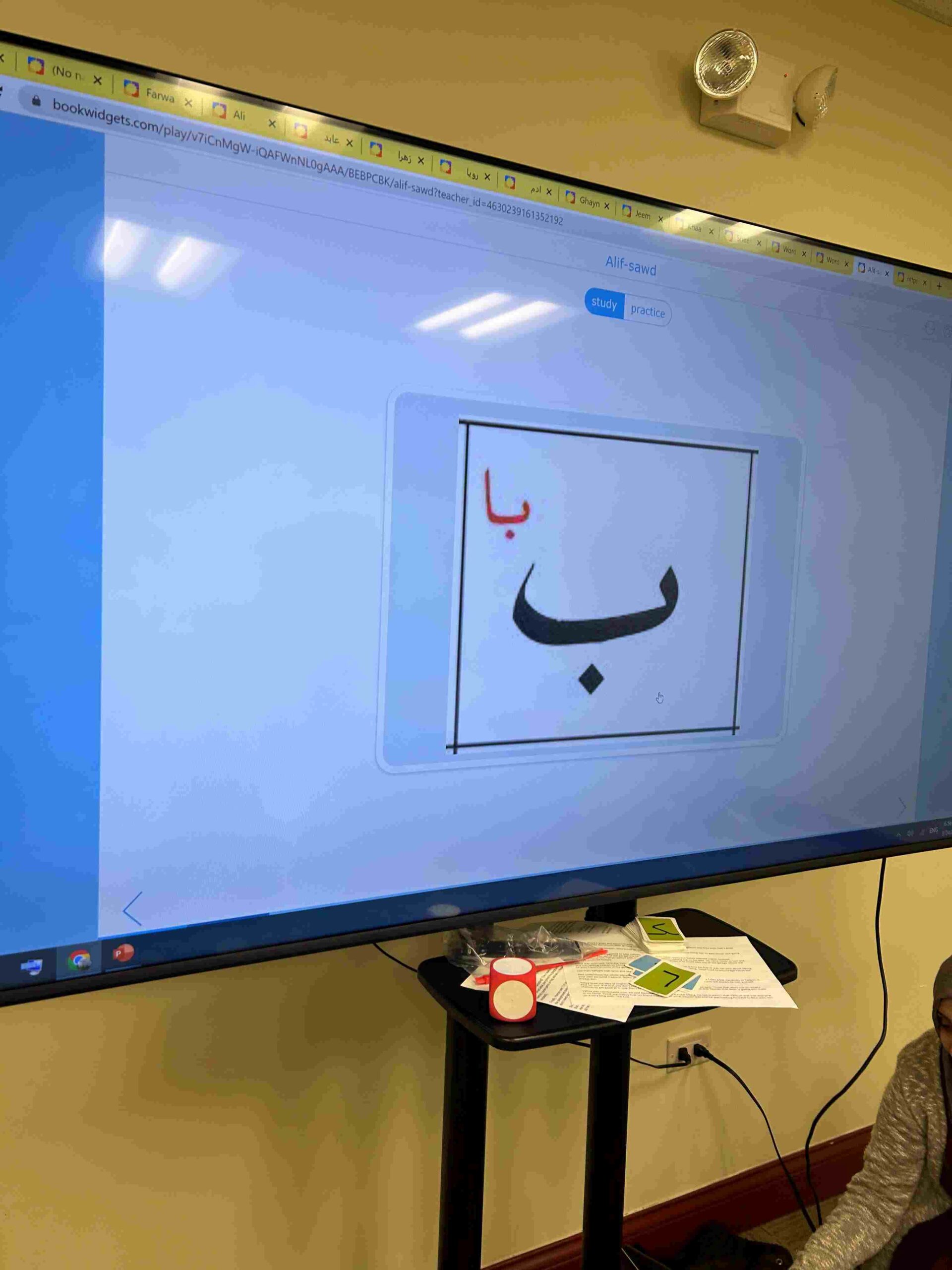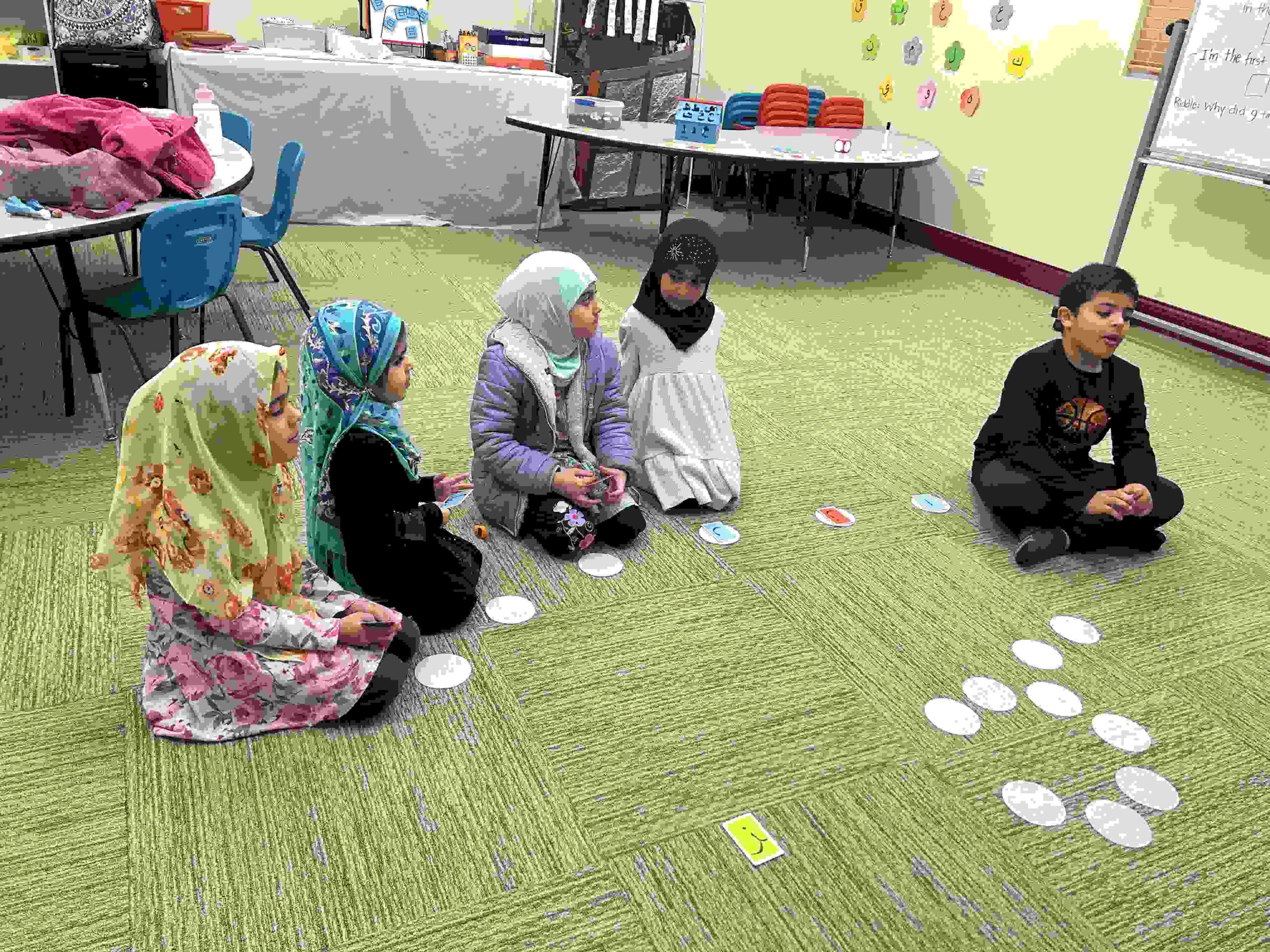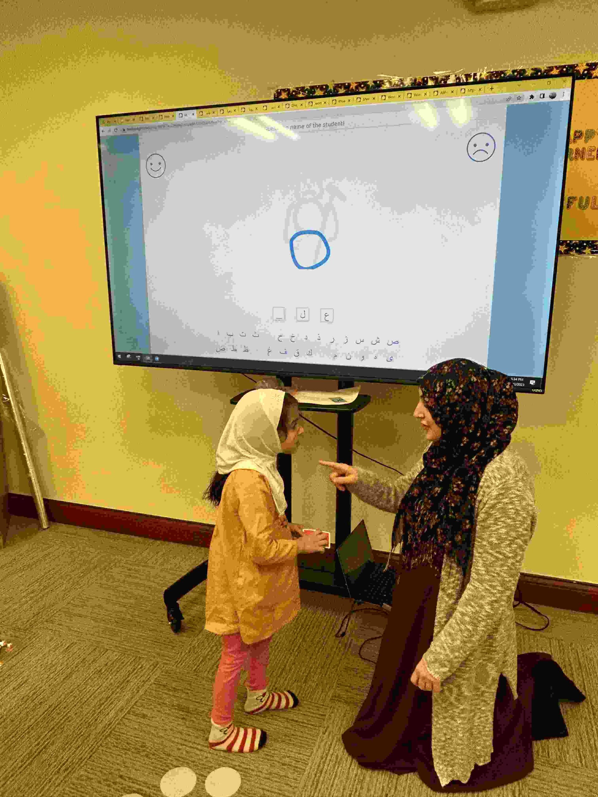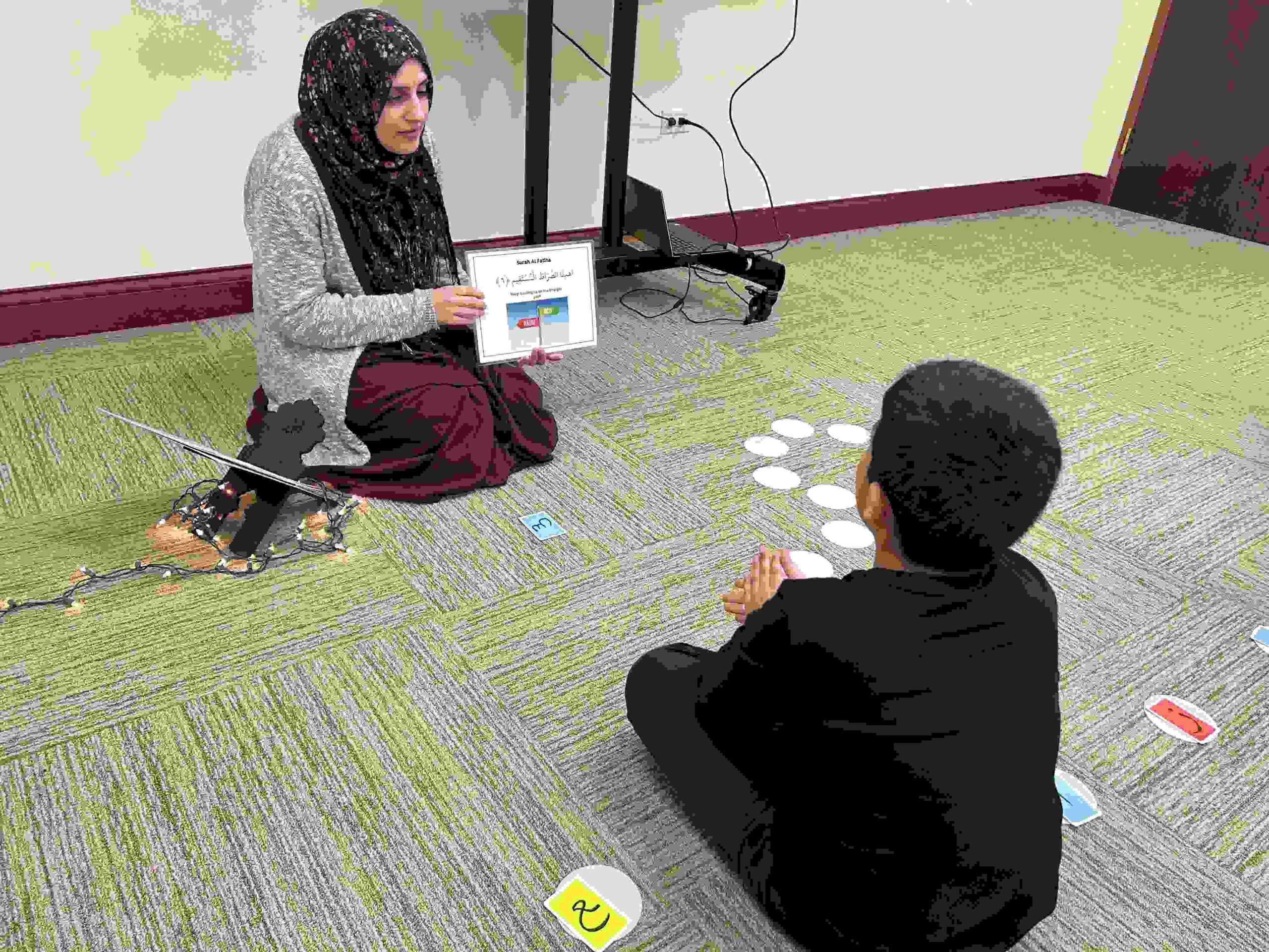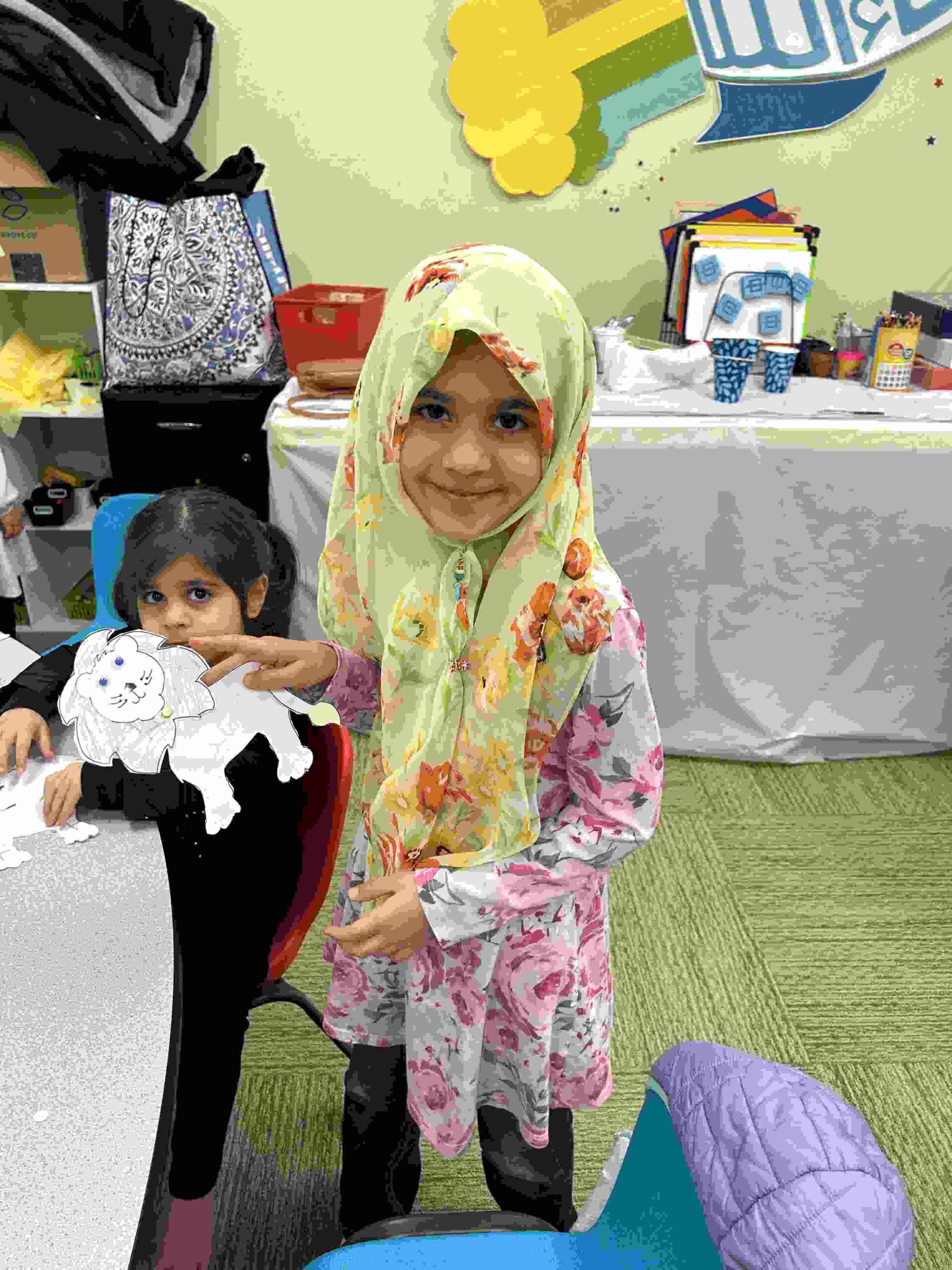HAMZA: Kids were introduced to Hamza with a short poem and story to demonstrate how it’s a special letter that doesn’t change its shape but can be found on its own or sitting on top of or below other letters.
