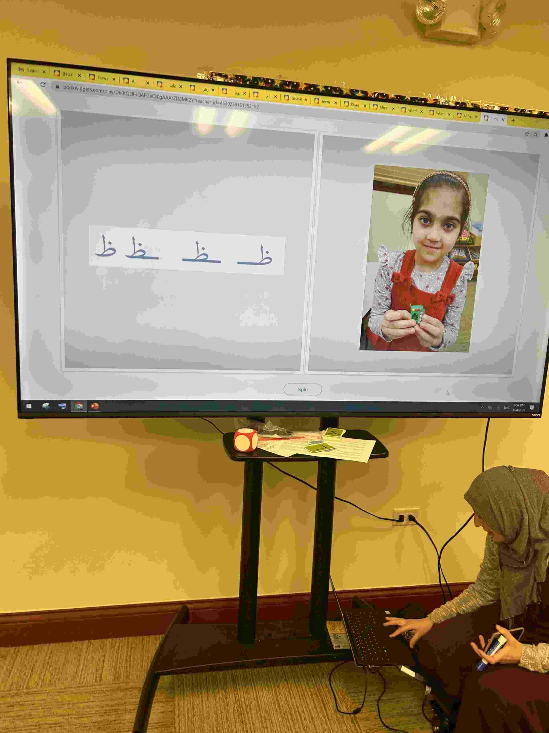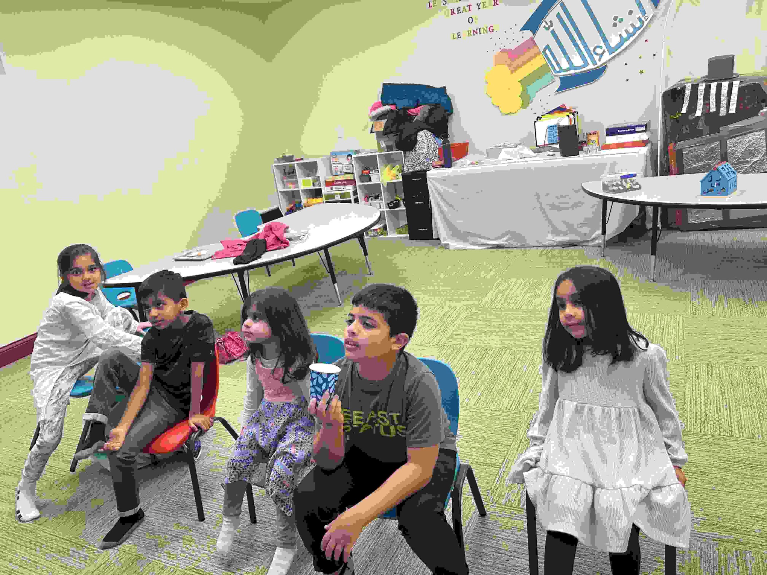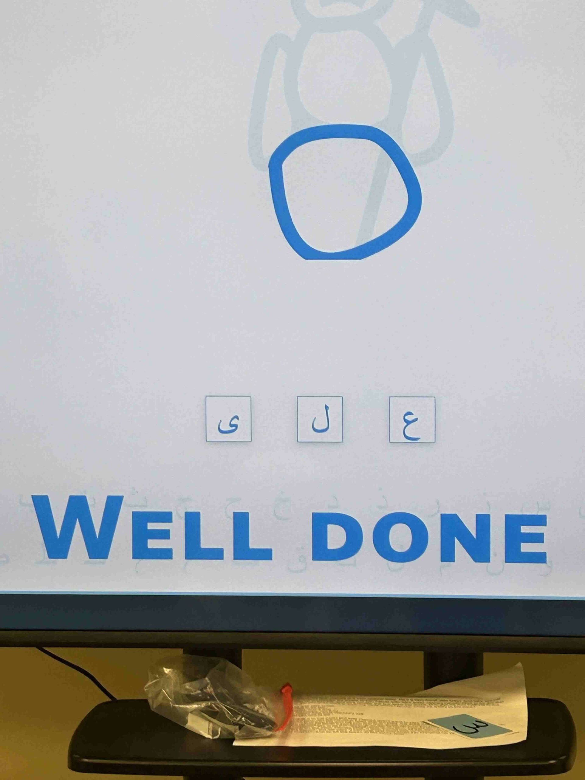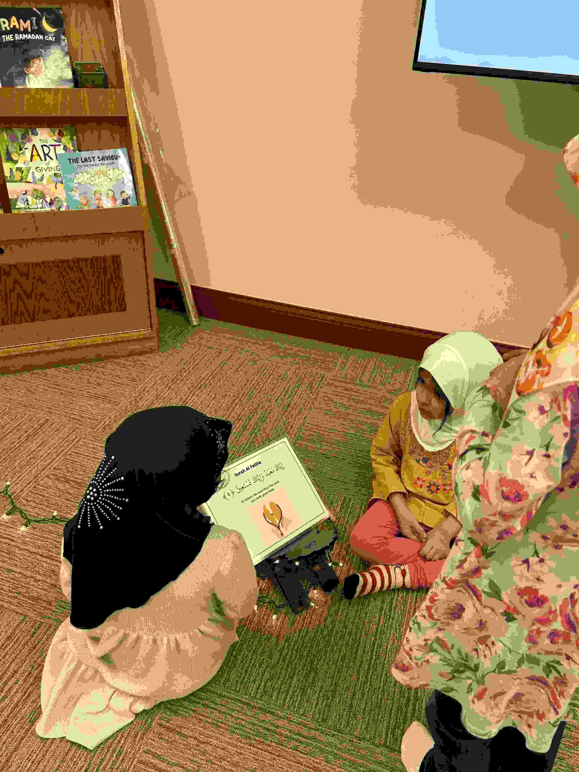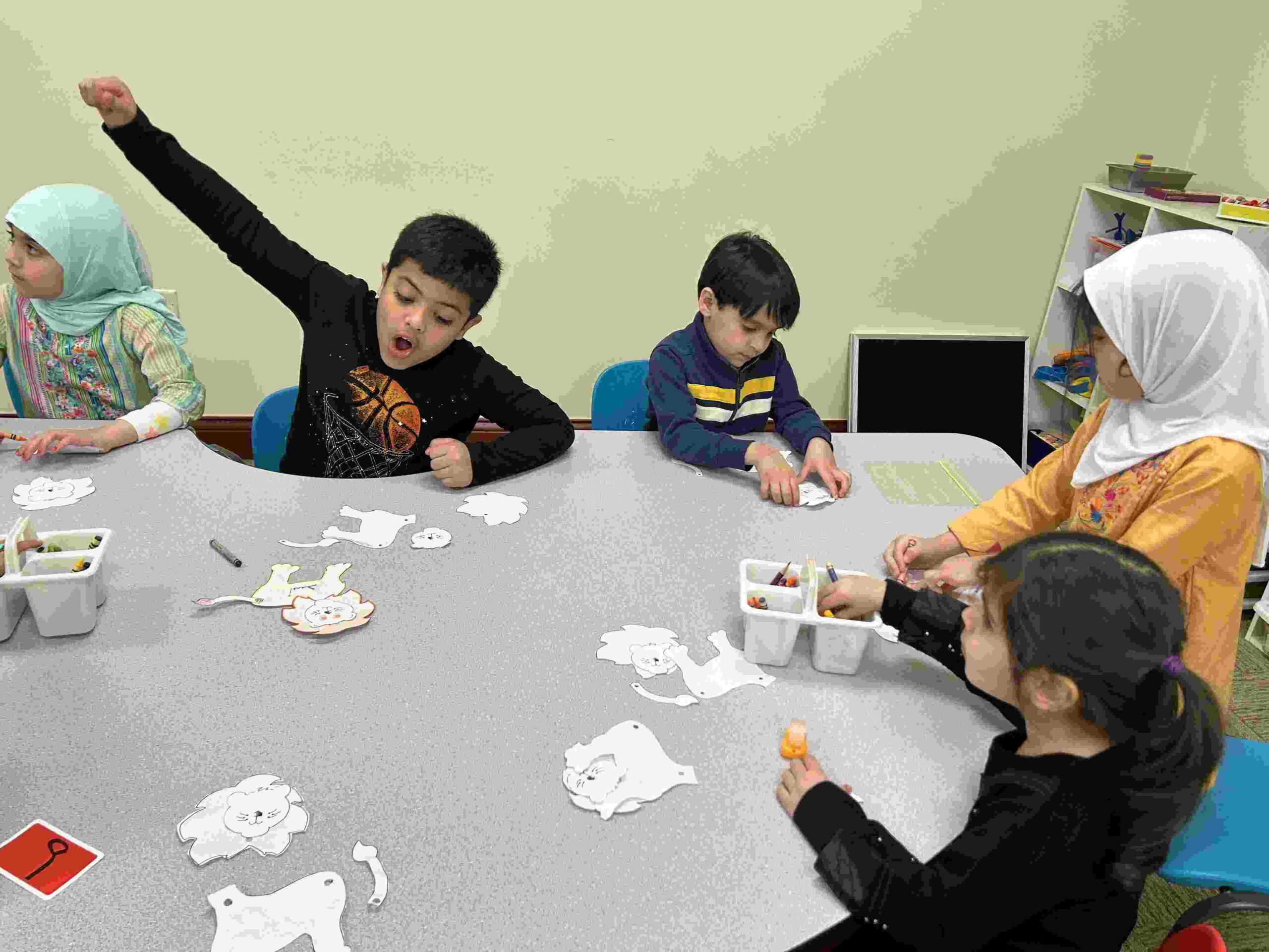 HAMZA: Kids were introduced to Hamza with a short poem and story to demonstrate how it’s a special letter that doesn’t change its shape but can be found on its own or sitting on top of or below other letters.