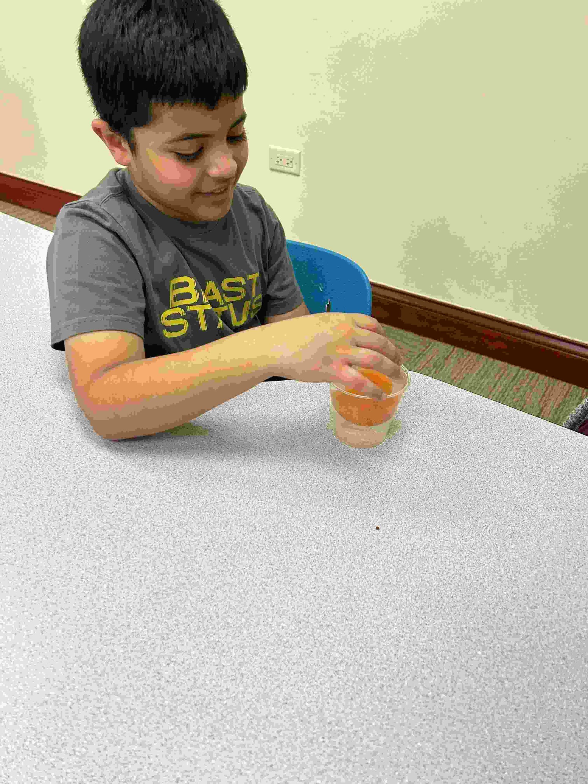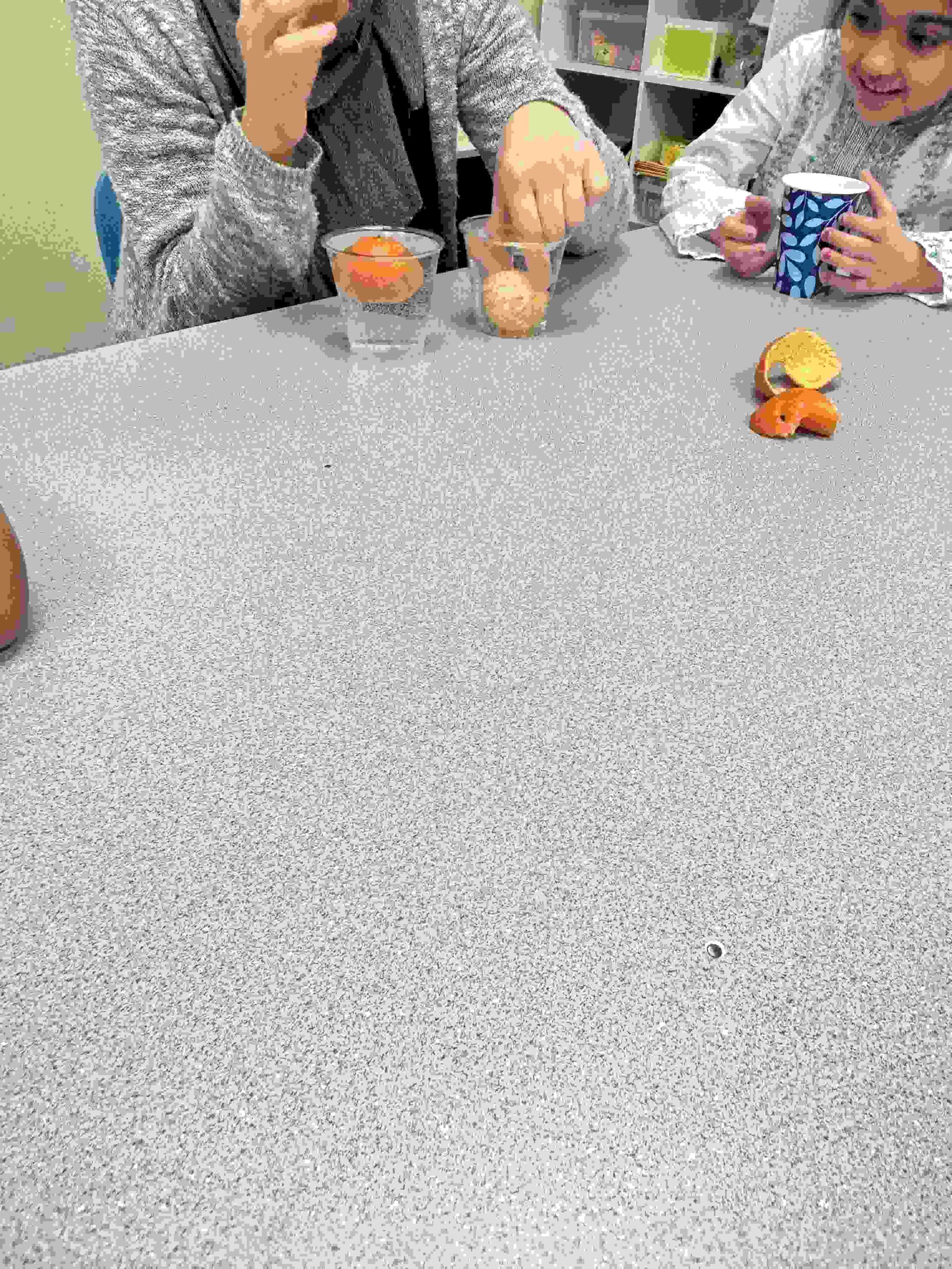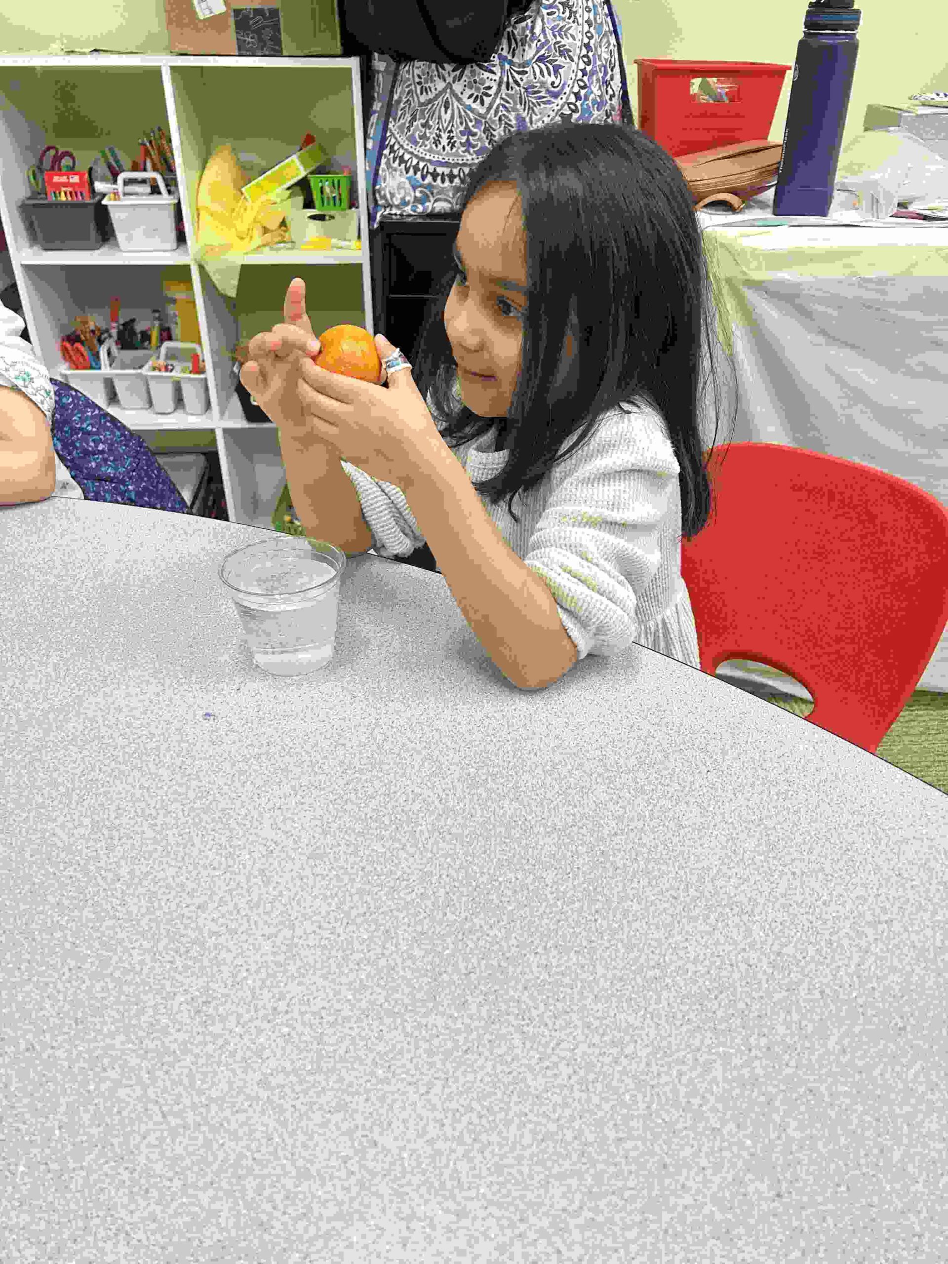 YA: We had a demonstration for the kids with a small cutie. The cutie floats when it has its peel on, and sinked without the peel. We explained to the kids that the orange peel is our certainty and trust in Allah’s guidance. With Allah’s help he will keep us floating and help us even in our most challenging times. Kids each had a turn to think of something personally challenging to them and drop the orange in the water.