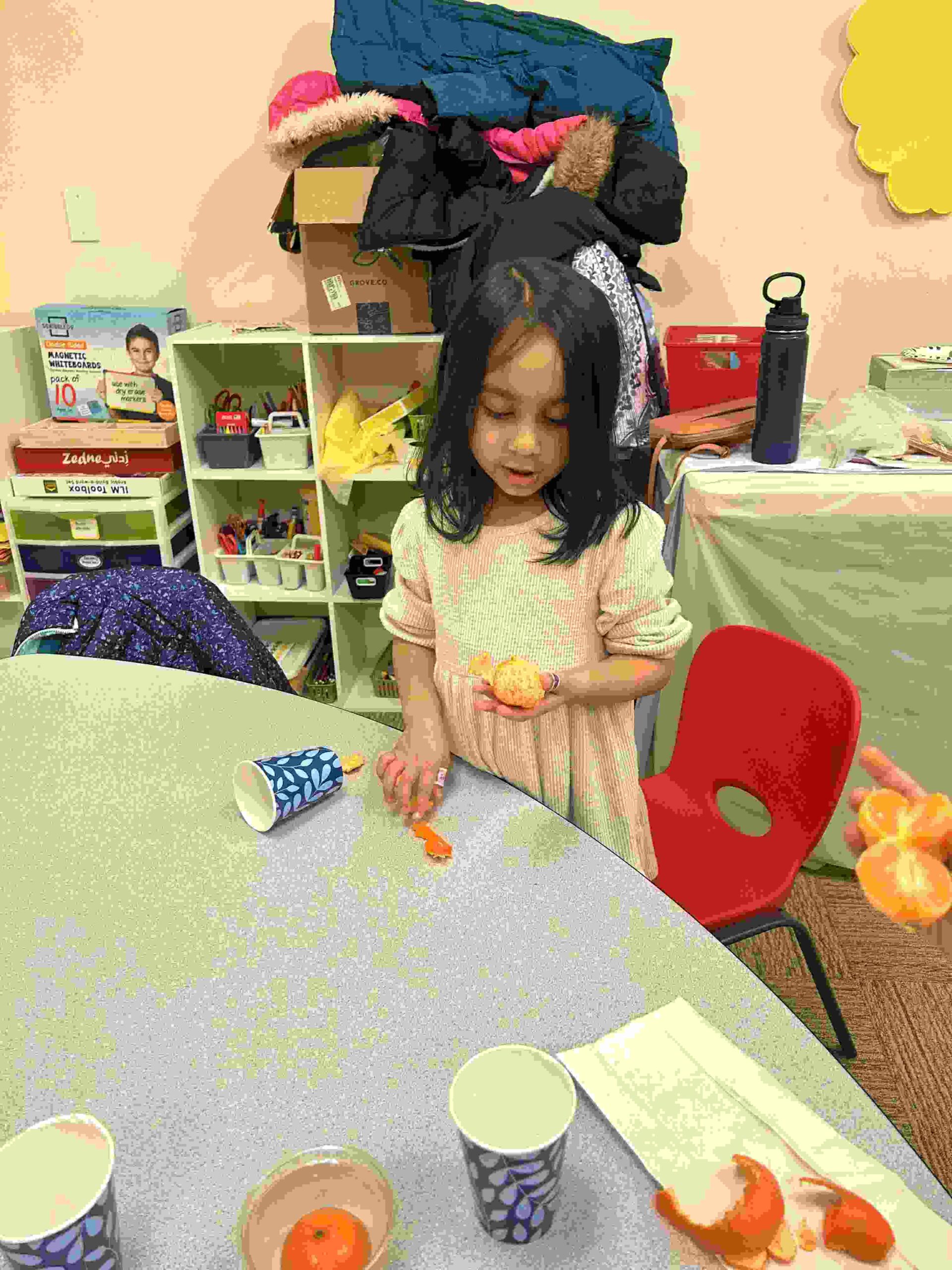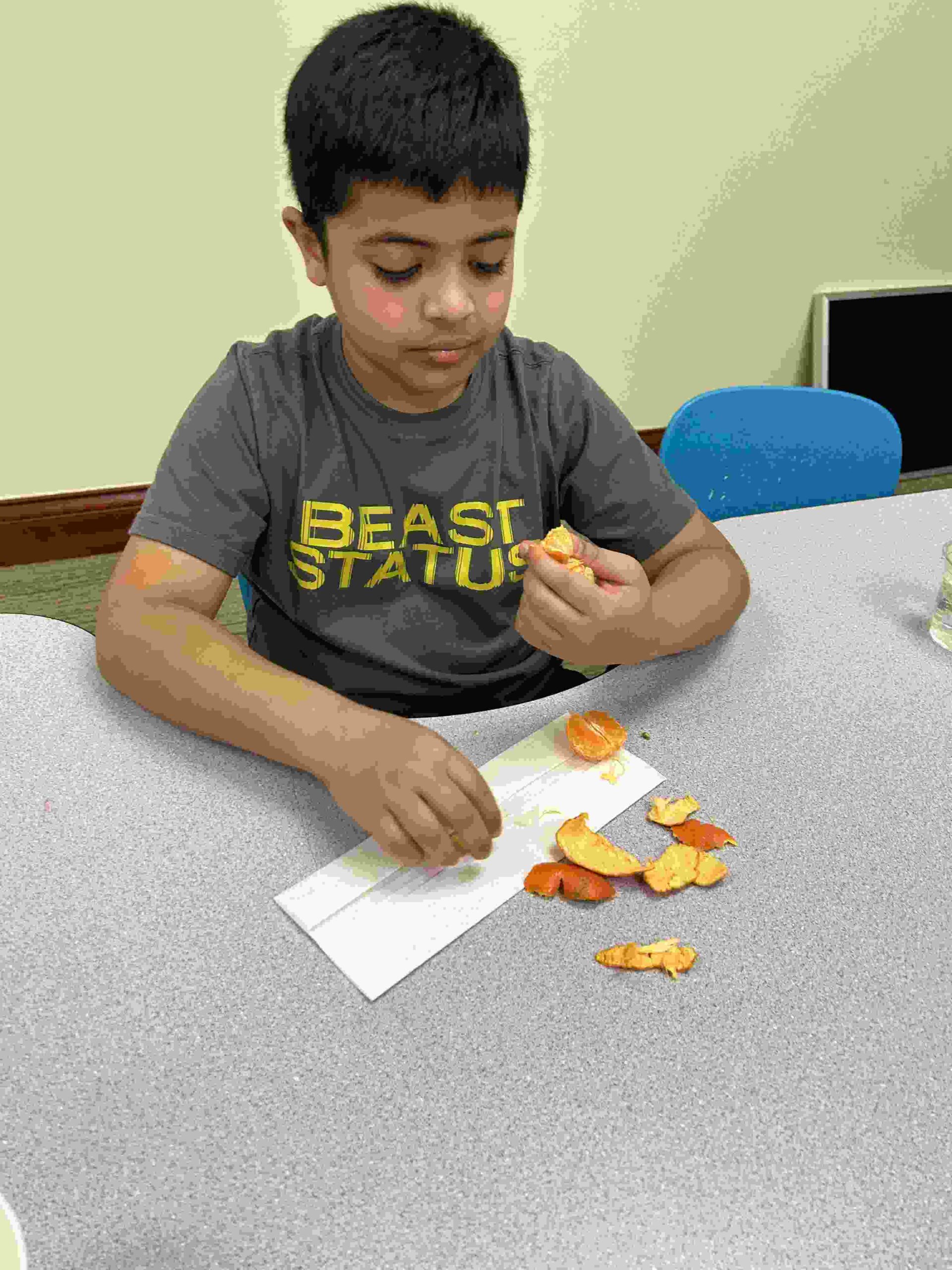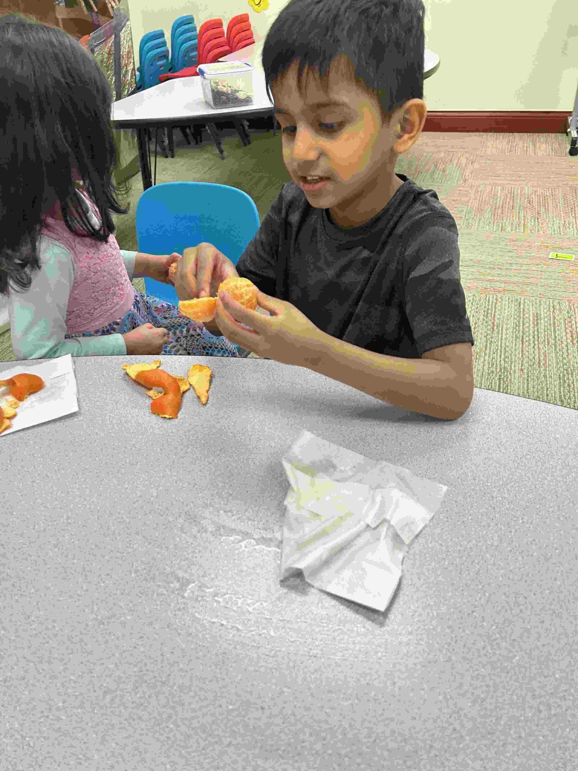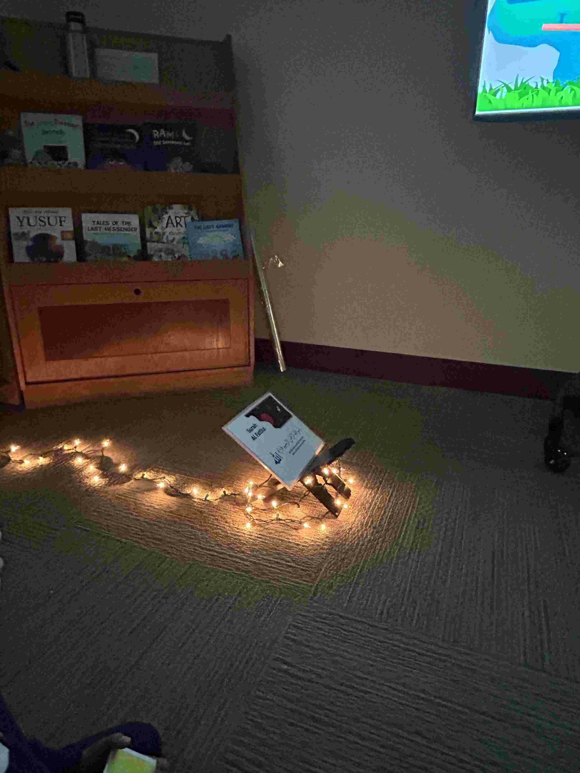 YA: We had a demonstration for the kids with a small cutie. The cutie floats when it has its peel on, and sinked without the peel. We explained to the kids that the orange peel is our certainty and trust in Allah’s guidance. With Allah’s help he will keep us floating and help us even in our most challenging times. Kids each had a turn to think of something personally challenging to them and drop the orange in the water.