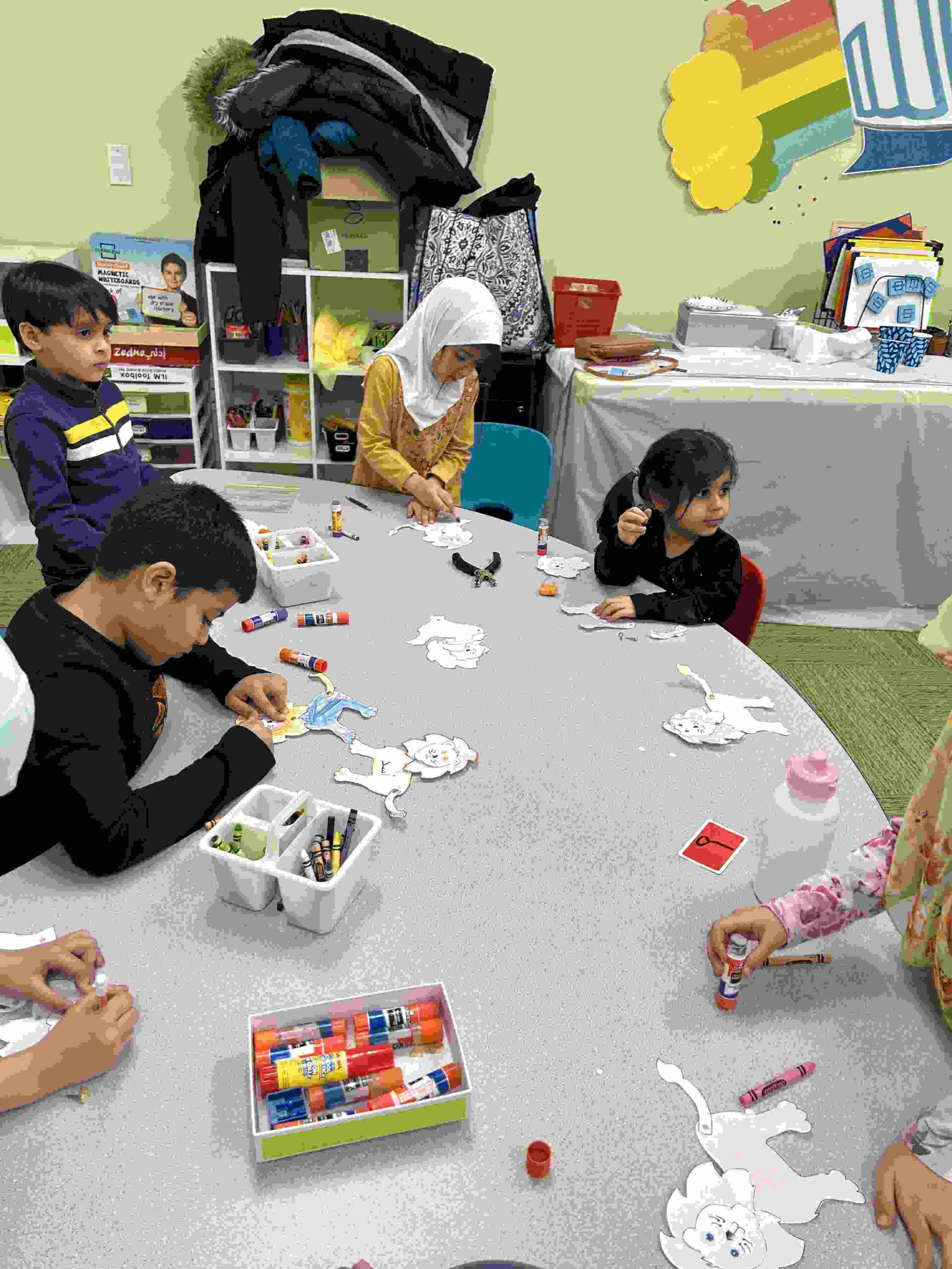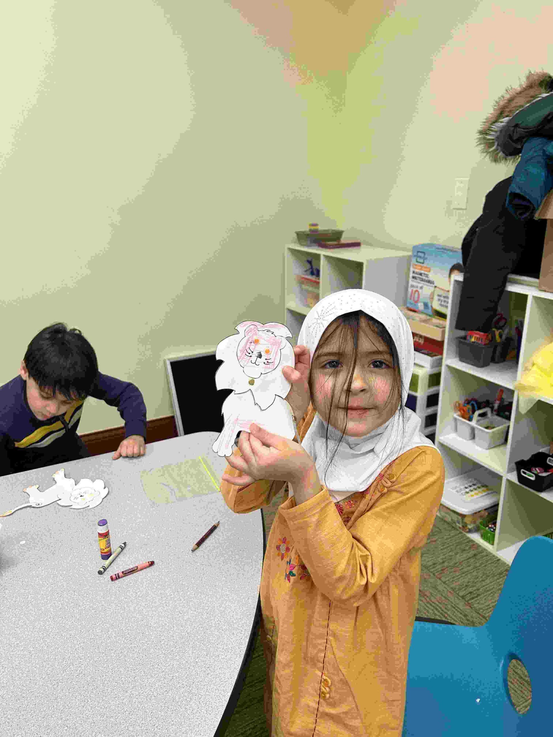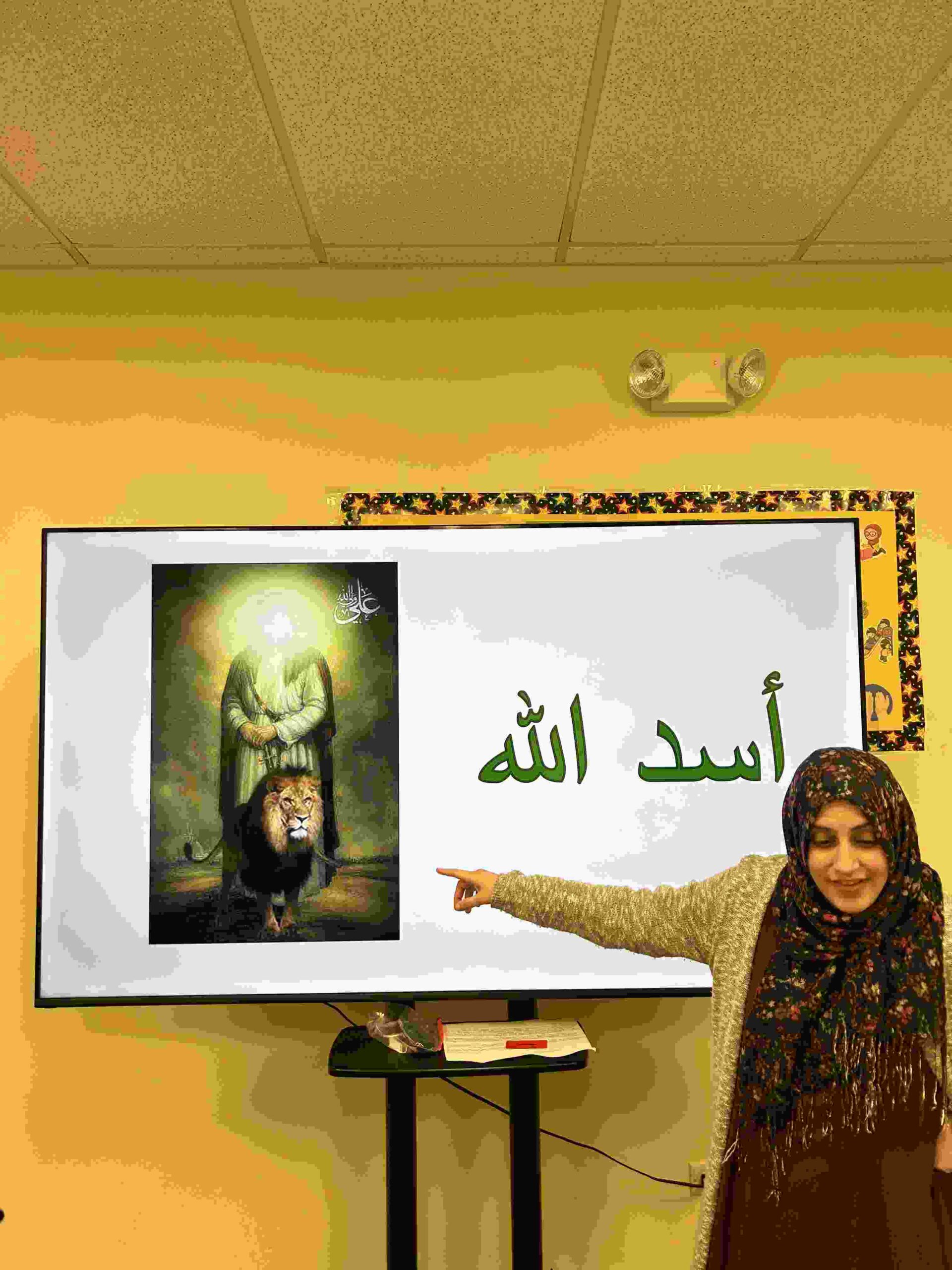 HAMZA: kids had a craft in honor Imam Ali through his title أسد اﻟﻠﻪ which begins with the letter HAMZA.