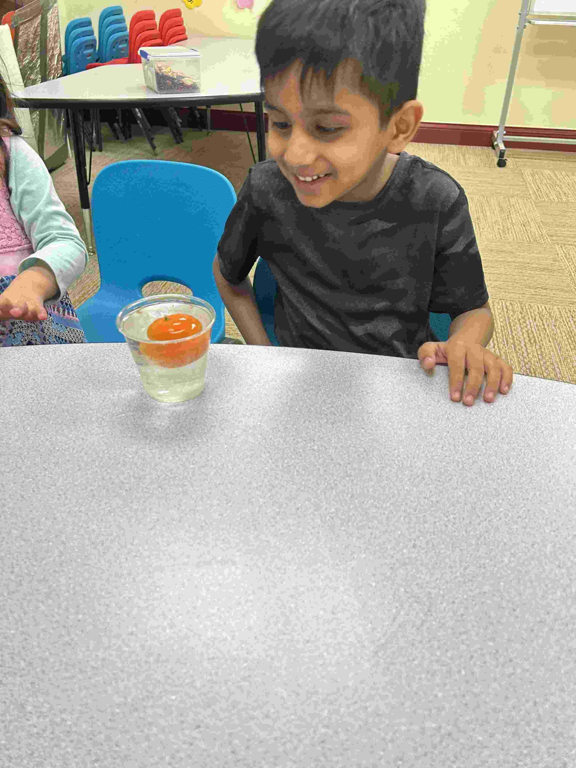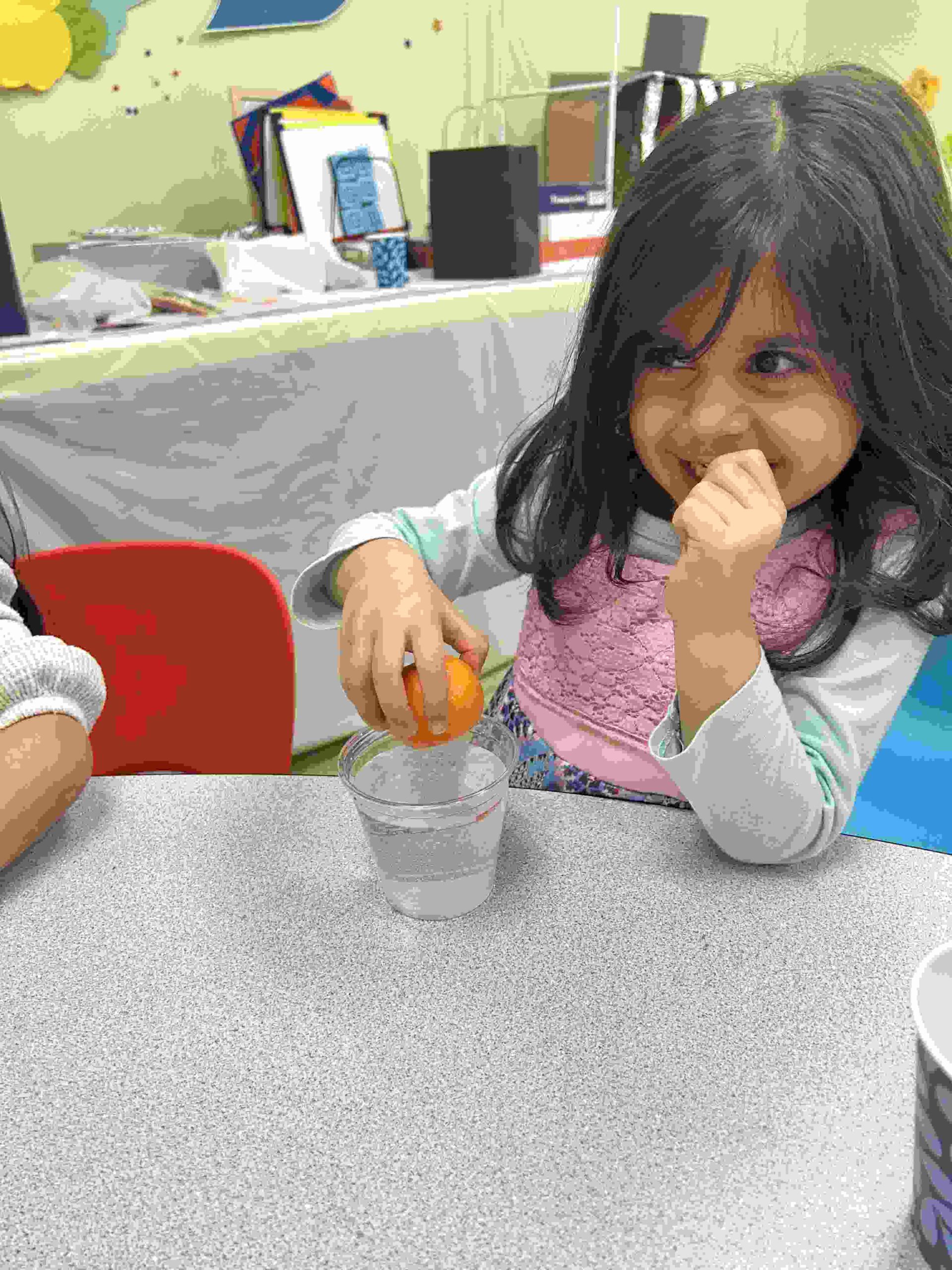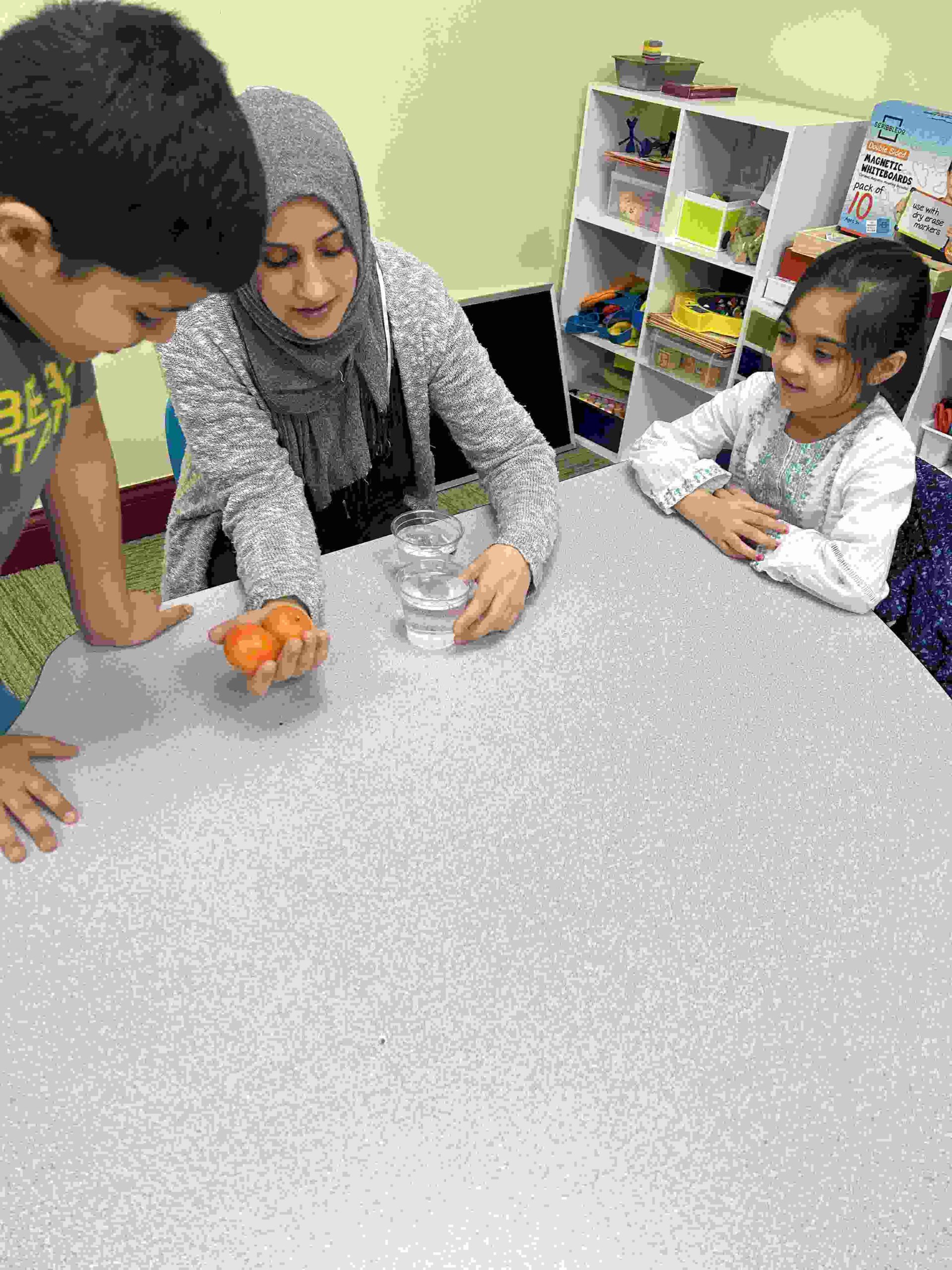 YA: We had a demonstration for the kids with a small cutie. The cutie floats when it has its peel on, and sinked without the peel. We explained to the kids that the orange peel is our certainty and trust in Allah’s guidance. With Allah’s help he will keep us floating and help us even in our most challenging times. Kids each had a turn to think of something personally challenging to them and drop the orange in the water.