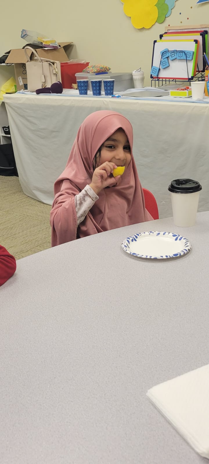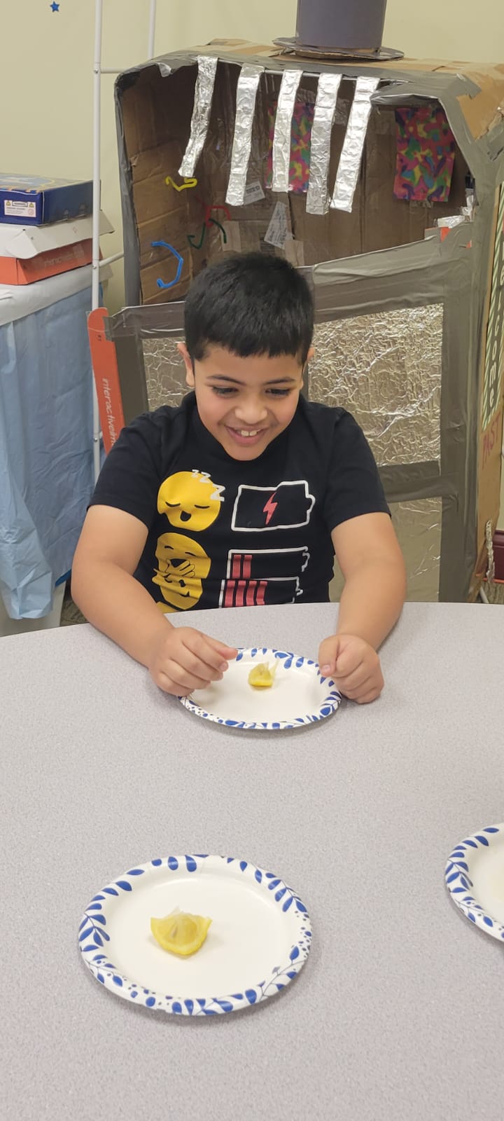 The kids tasted lemons, marshmallows(halal), and chocolate chips as an experiment to check our taste buds.