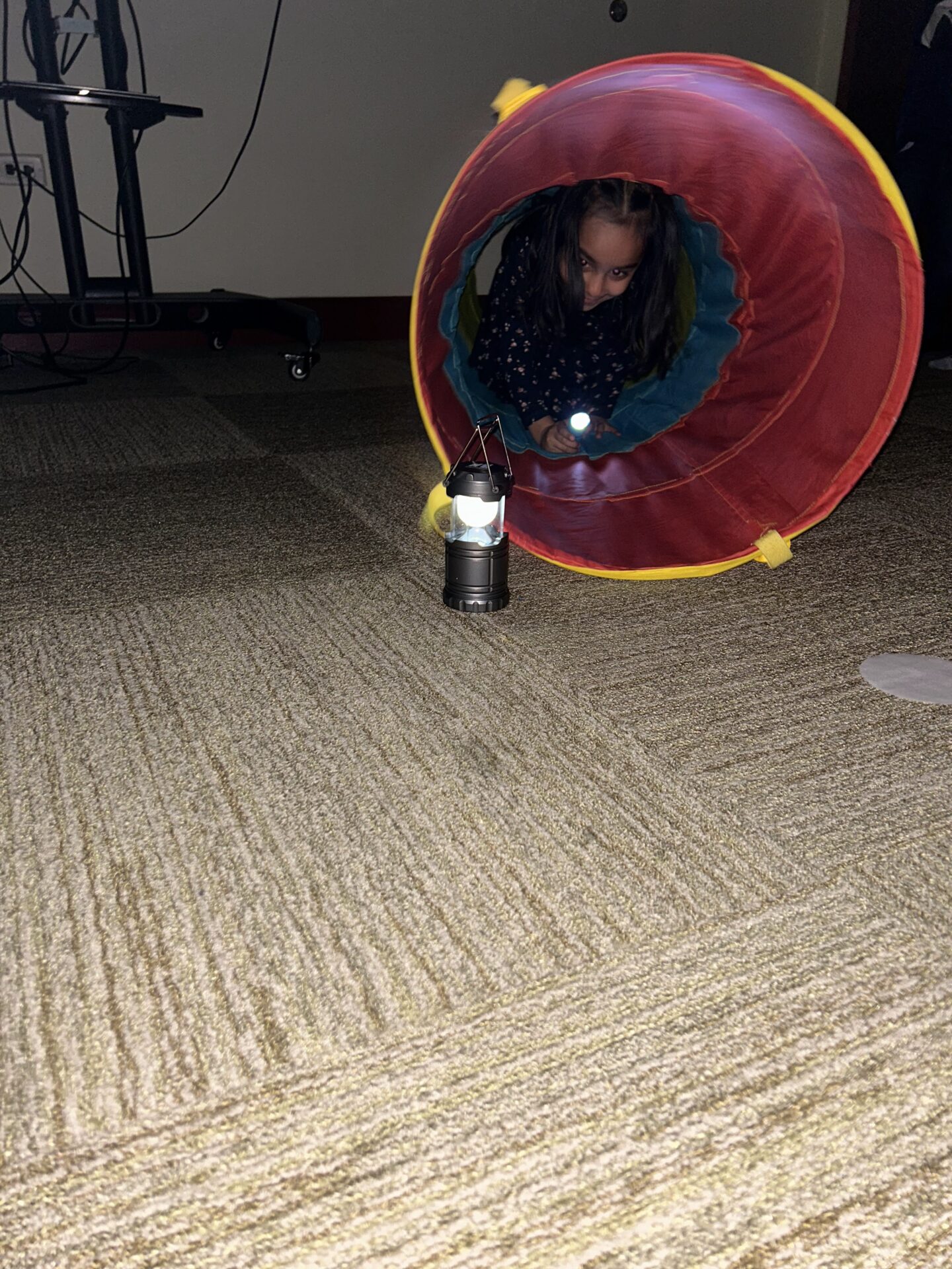 We had the kids run through a maze in the dark and then again with a flashlight. Allah says in the Quran “Allah is the light of the heavens and the Earth” (24:35) We explained to the kids that, just like the light of the flashlight, Allah guides us in our lives.