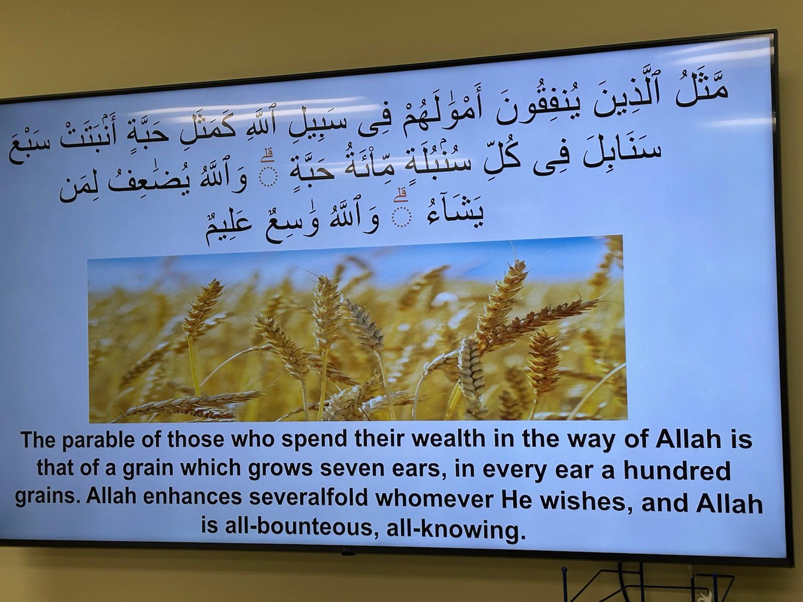 The parable of those who spend their wealth in the way of Allah is that of a grain which grows seven ears, in every ear a hundred grains. Allah enhances severalfold whomever He wishes, and Allah is all-bounteous, all-knowing.” (2:261)