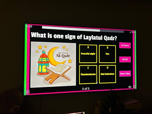 In class, we talked about the meaning and importance of the Laylatul Qadar. We had a quiz regarding the Laylatul Qadar which Mashallah children enjoyed.
